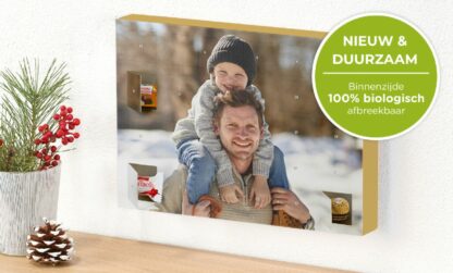 Jouw foto op de voorkant en de binnenkant van de deurtjes bedrukt met jouw foto; gevuld met Ferrero® pralines; Large, A4-formaat, met 24 pralines of XXL met 27 pralines.