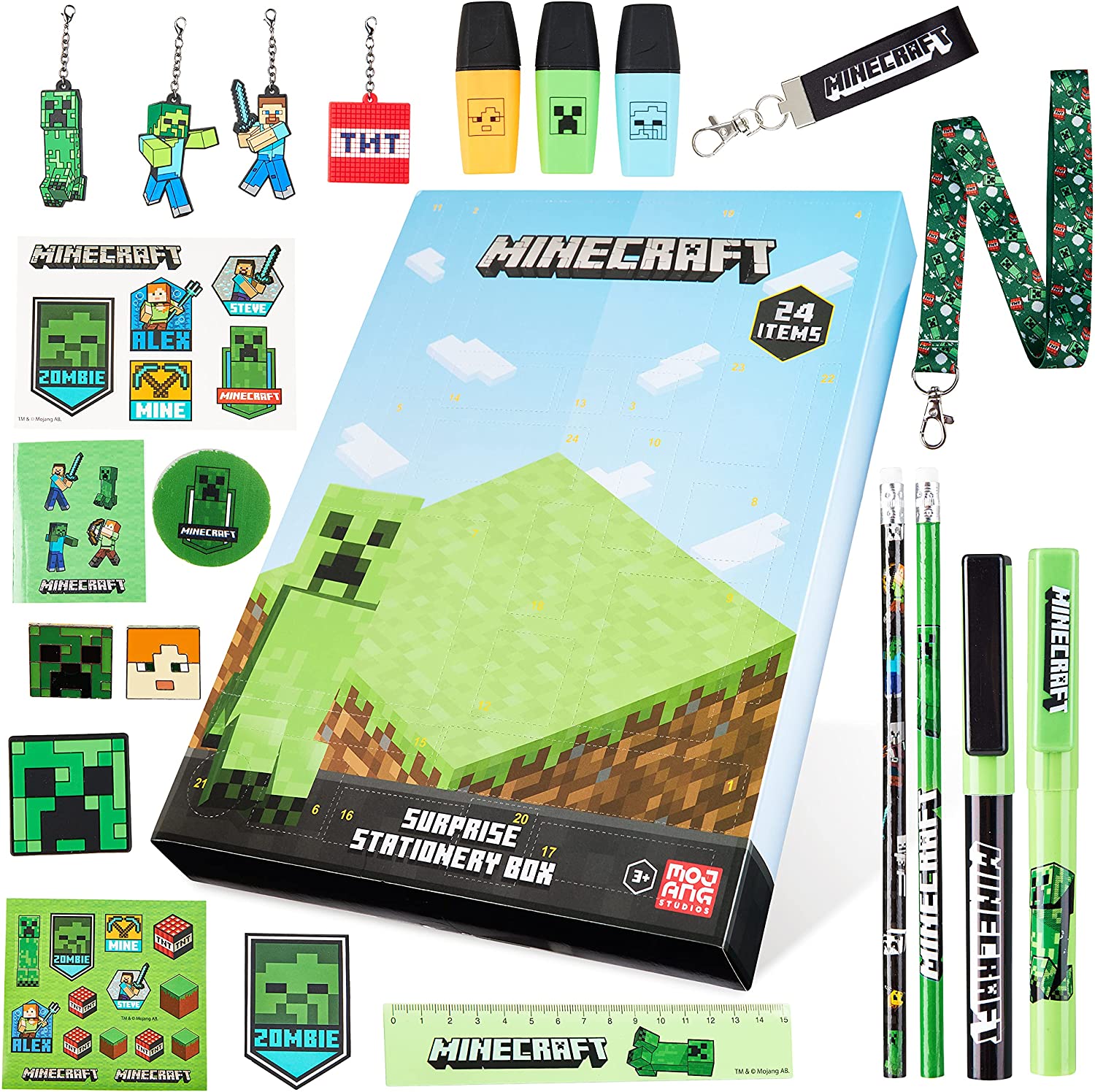De Minecraft Adventskalender 2021 bevat een complete Minecraft kantoorartikelen set: een must have voor alle gamers.