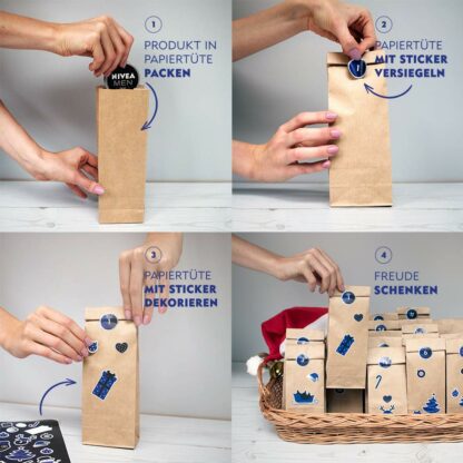 Individuele adventskalender – deze adventskalender kan dankzij de decoratieve kerststickers en praktische papieren zakken individueel worden vormgegeven.