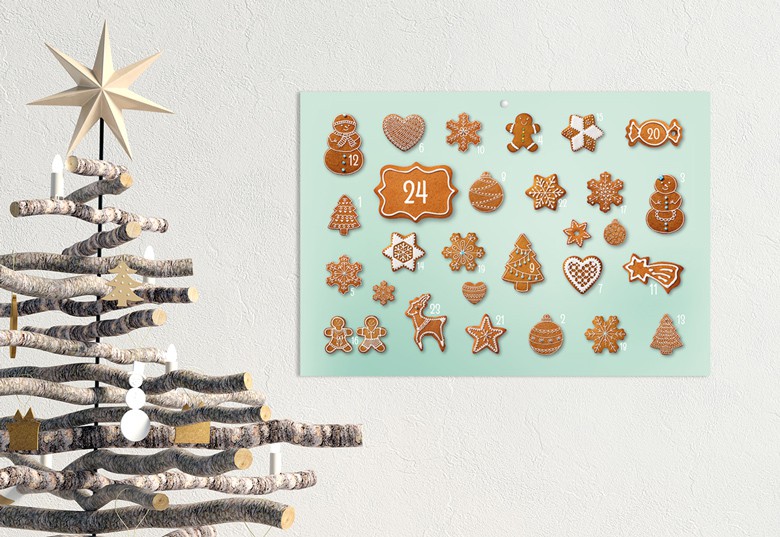 Voeg 24 foto’s toe; een voor achter elk luikje