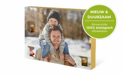 Jouw foto op de voorkant en de binnenkant van de deurtjes bedrukt met jouw foto; gevuld met Ferrero® pralines; Large, A4-formaat, met 24 pralines of XXL met 27 pralines.