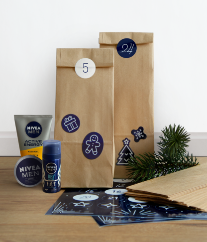 Nivea Men DIY Adventskalender 2020 – met 24 verzorgende Nivea en Labello producten en praktische accessoires biedt de kalender verwenmomenten voor de verzorgde man.