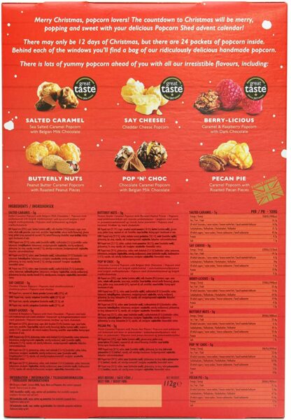This advent calendar contains some of our best selling Gourmet Popcorn flavours, which are all GLUTEN FREE and VEGETARIAN.