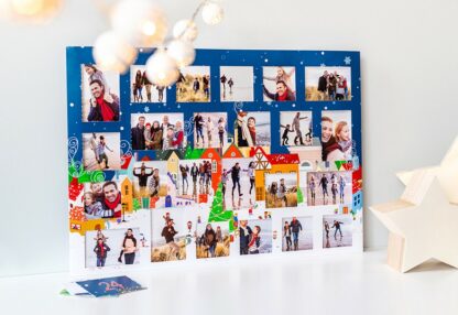 De feestdagen staan weer voor de deur, dus het aftellen tot Kerstmis kan beginnen! Kies een thema voor de buitenkant van de Adventskalender met foto’s en voeg een lading hartverwarmende foto’s toe die tevoorschijn komen wanneer je elke dag een luikje opent! Als je klaar bent met aftellen, kun je de Adventskalender met foto’s een andere functie geven. Gebruik de poster met foto’s als decoratie aan de muur of knip de foto’s uit en bewaar ze samen met je andere foto’s. Deze herinneringen zijn voor altijd!