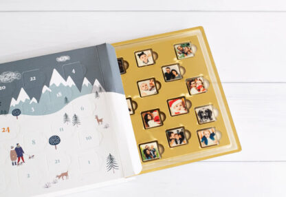 Achter elk deurtje zit een stukje chocolade gepersonaliseerd met een foto