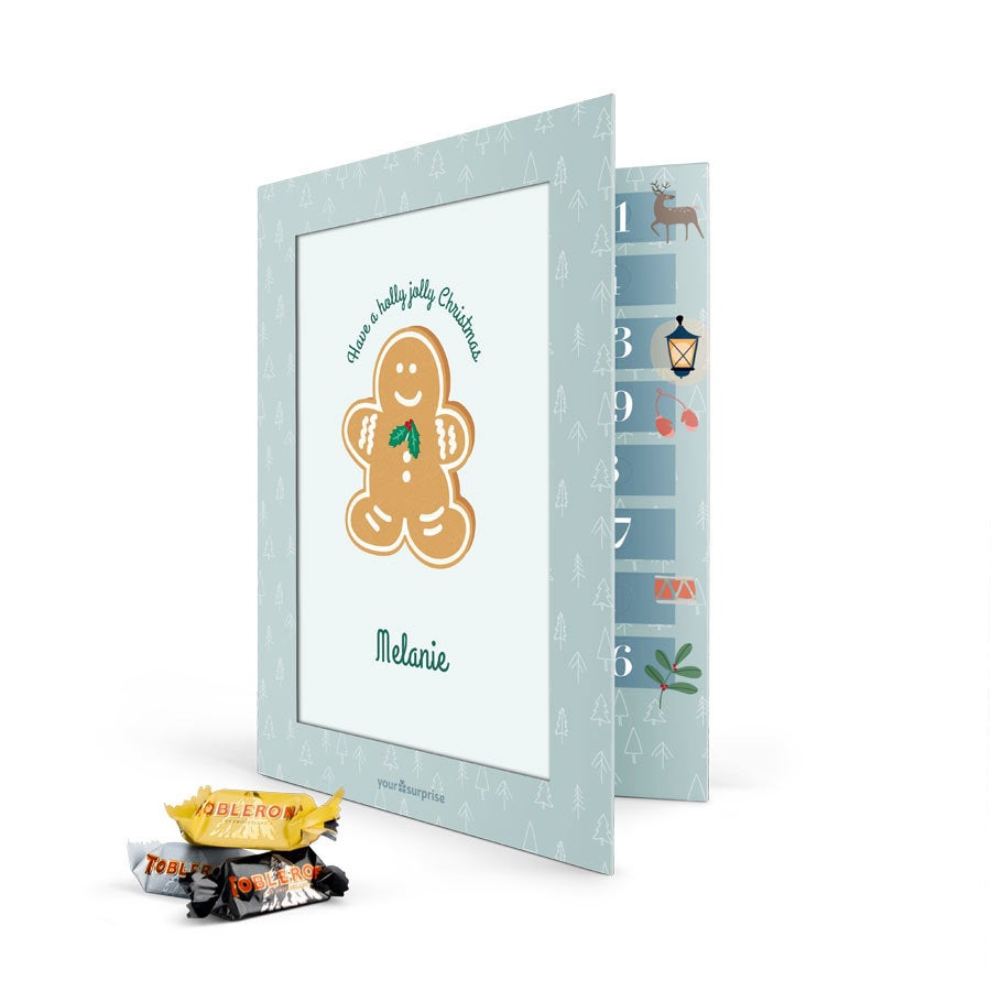Kun jij haast niet wachten tot Kerstmis en droom je al weken van cadeautjes onder de boom, lekker eten en foute kerstliedjes? Dan kan de Toblerone adventskalender het aftellen een stuk leuker, maar vooral lekkerder maken! Jij ontwerpt hem namelijk helemaal zelf met een naam, foto en/of tekst naar keuze. Verras je vrienden, familie of collega’s met deze vrolijke kerstverrassing. Maar je kunt natuurlijk ook jezelf trakteren en snoepend aftellen naar the most wonderful time of the year.
